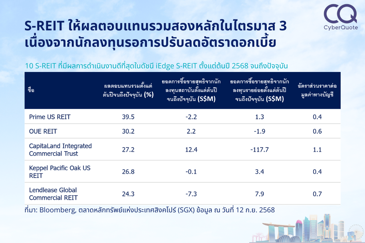 ที่มา: ตลาดหลักทรัพย์แห่งประเทศสิงคโปร์ (SGX), Morningstar (ข้อมูล ณ วันที่ 25 กันยายน 2568) อัตราผลตอบแทนจากเงินปันผลของ CAREIT คำนวณจากฐานรายปีสำหรับปีงบประมาณ 2569