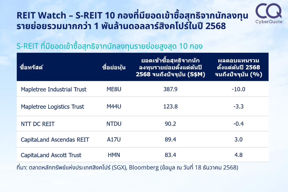 ที่มา: ตลาดหลักทรัพย์แห่งประเทศสิงคโปร์ (SGX), Bloomberg (ข้อมูล ณ วันที่ 18 ธันวาคม 2568)