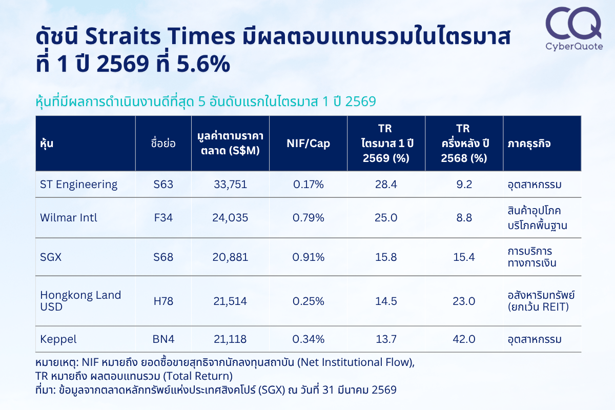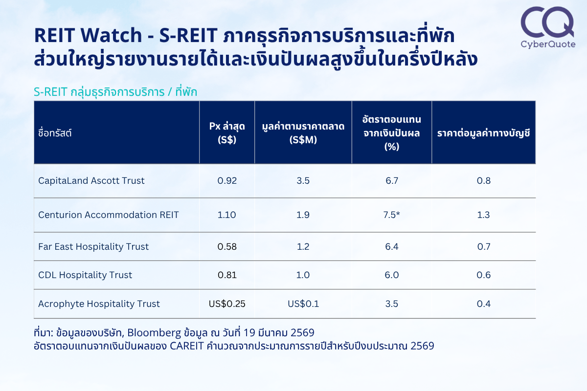 ภาค S-REIT ตามที่วัดโดยดัชนี iEdge S-REIT ปรับตัวลดลงในไตรมาสแรกของปี 2569 เนื่องจากความตึงเครียดทางภูมิรัฐศาสตร์สร้างแรงกดดันต่อความเชื่อมั่นของนักลงทุน โดยดัชนีปรับตัวเพิ่มขึ้นเล็กน้อยในเดือนมกราคม แต่ลดลง 7% ในเดือนมีนาคม ท่ามกลางความขัดแย้งที่ยังคงดำเนินอยู่ในตะวันออกกลาง ส่งผลให้ผลตอบแทนรวมเป็นลบที่ 6.4% ในไตรมาส 1 ปี 2569
