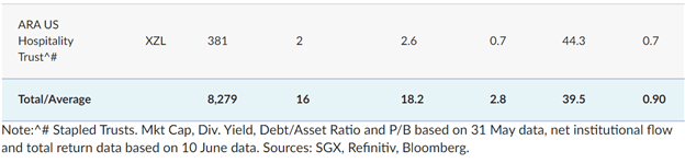 • กลุ่ม S-REIT ที่มีผลการดําเนินงานแข็งแกร่งที่สุดใน YTD ปี 2022 คือ Hospitality ซึ่งมาจาก 5 กองทุน (Stabled Trusts) ที่มีผลประกอบการเฉลี่ยอยู่ที่ 2% ผลตอบแทนรวมด้วยการไหลเข้าของสถาบันสุทธิ 16 ล้านดอลลาร์สิงคโปร์ ซึ่งใกล้เคียงกับการปรับแนวโน้มเป็น RevPAR (รายได้ต่อห้องว่าง)สำหรับจุดที่สิงคโปร์มุ่งเน้นเนื่องจากการกลับมาของโมเมนตัมที่สูงขึ้น