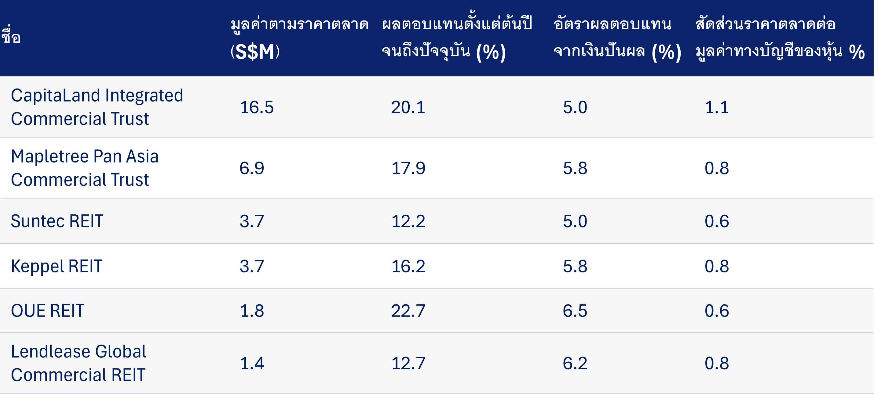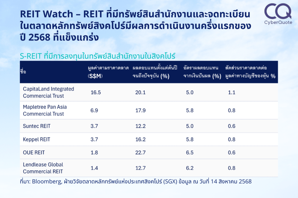 S-REIT ที่มีการลงทุนในทรัพย์สินสำนักงานในสิงคโปร์