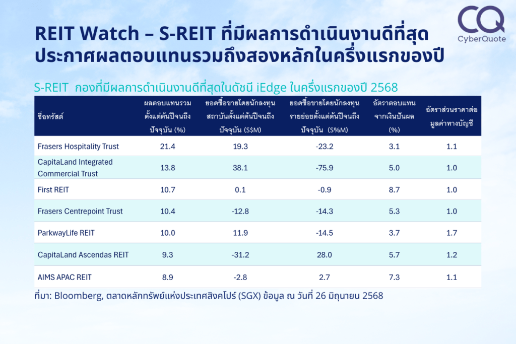 S-REIT 10 กองที่มีผลการดำเนินงานดีที่สุดในดัชนี iEdge ในครึ่งแรกของปี 2568